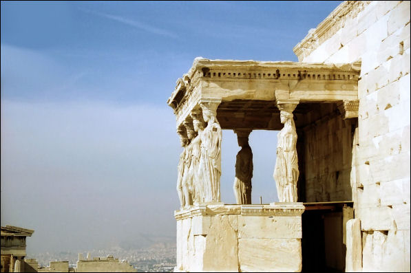 Akròpolis, Erechteion en Kariatiden met op achtergrond (l) Lika-vitos