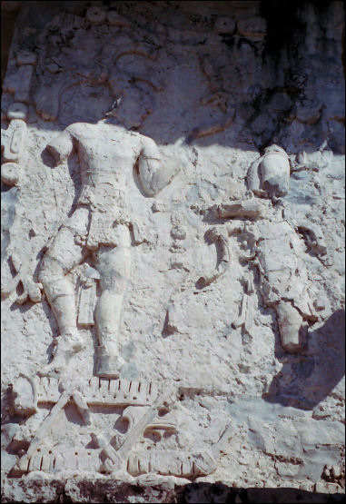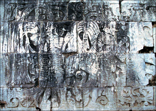 ... met details van in-legwerk, o.a. van de regengod Chac |